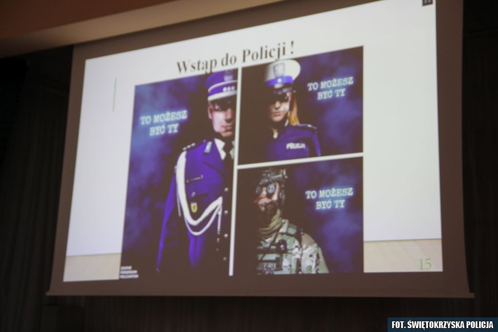Dziś w Zespole Szkół im. Stanisława Staszica w Staszowie odbyła się debata poświęcona tematyce związanej doborem do służby w Policji oraz promocją zawodu policjanta. W trakcie przedpołudniowego spotkania policjanci omówili tematy związane z warunkami przyjęcia do służby w Policji oraz stanem bezpieczeństwa na terenie miasta.
