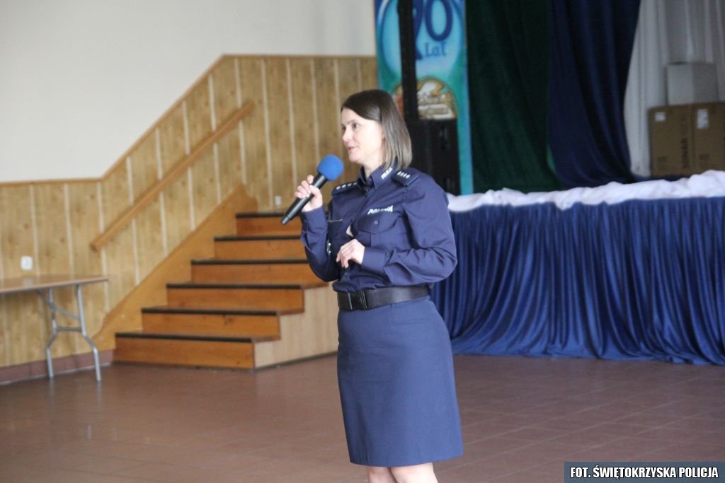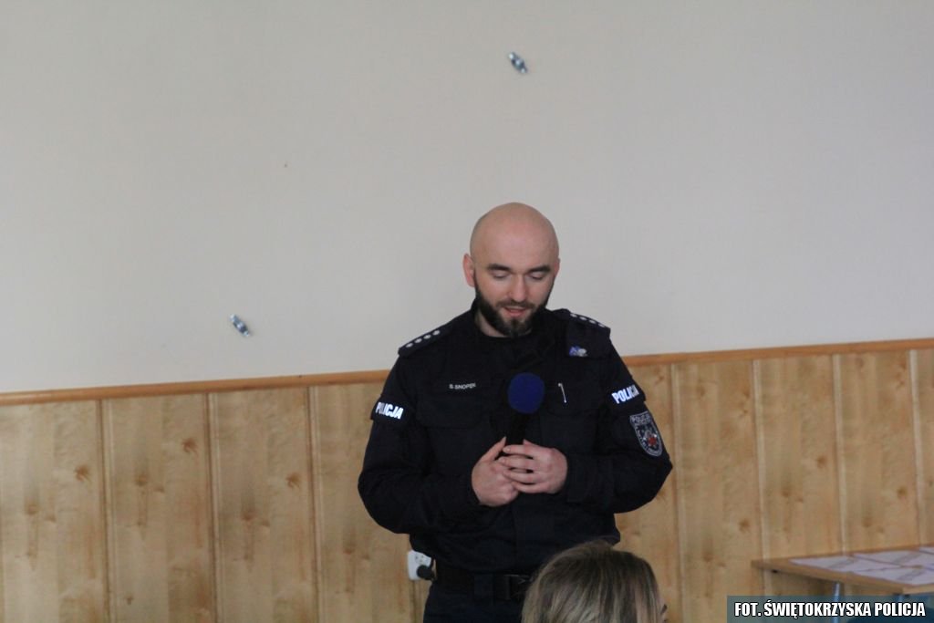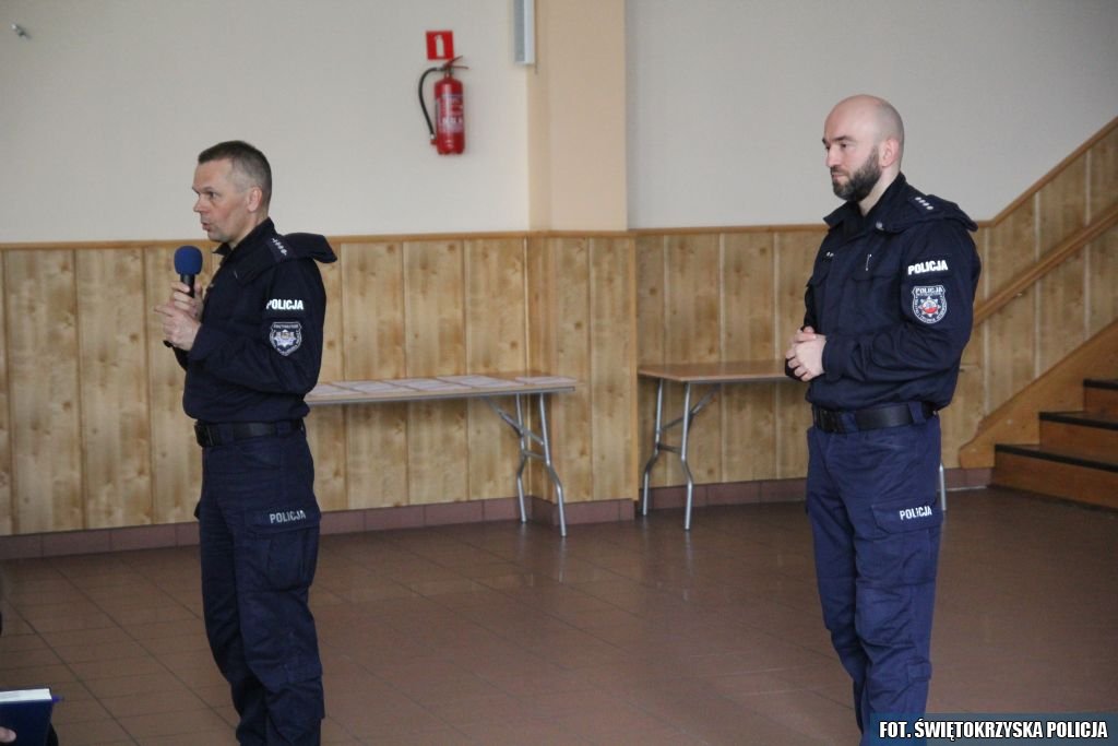 oraz przedstawił sposób jej funkcjonowania. Mundurowy omówił także aplikację ,,Moja Komenda”.