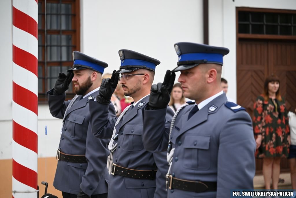 Następnie Pierwszy Zastępca Komendanta Wojewódzkiego Policji w Kielcach oddał honor sztandarowi staszowskiej jednostki, po czym przywitał się z policjantami. Kolejno przy dźwiękach Mazurka Dąbrowskiego podniesiono flagę państwową.