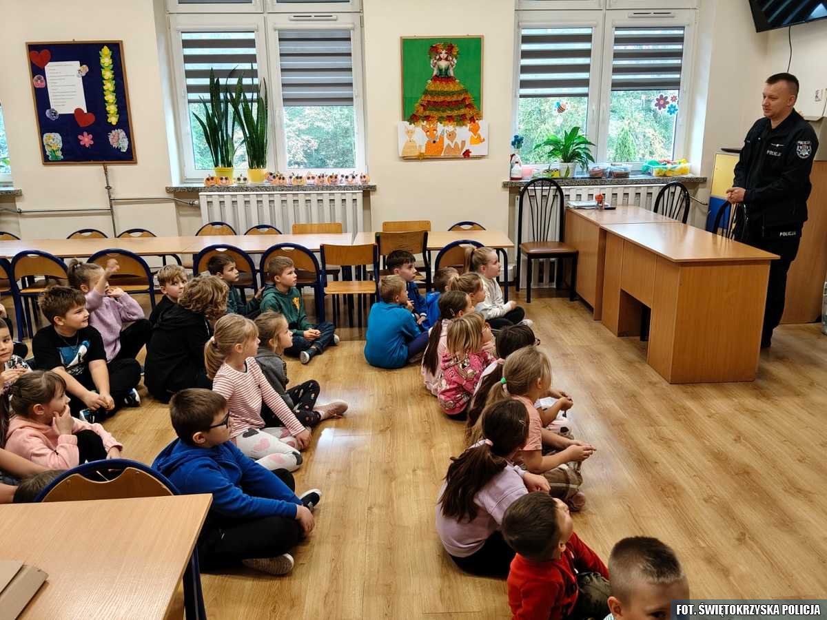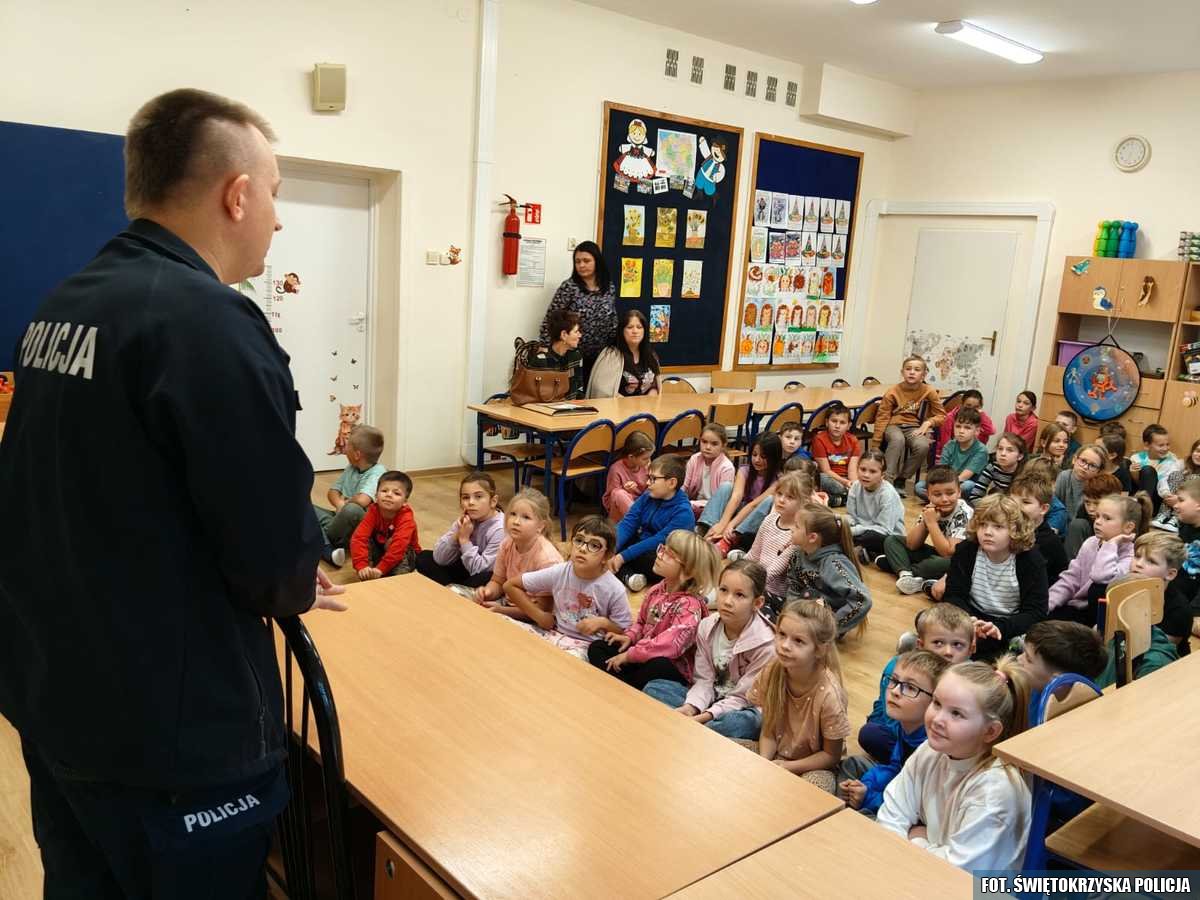 Takie spotkania przeprowadził w szkole w Ruszczy dzielnicowy z Komisariatu Policji w Połańcu, gdzie rozmawiał z uczniami na temat bezpieczeństwa w ruchu drogowym. W szkołach podstawowych, ale także w przedszkolu mówił jak przejść bezpiecznie przez ,,zebrę”. Najmłodszym słuchaczom przypomniał jaki kolor sygnalizacji świetlnej uprawnia pieszego do wejścia na jezdnię, a jaki mówi, aby się zatrzymać. Policjant wskazał również na odblaski dzięki, którym piesi są widoczni. Ponadto dzielnicowy wskazał sytuacje przy których pomimo zielonego światła nie wolno wejść na jezdnię. Słuchacze doskonale wiedzieli, żw mowa o radiowozach, karetkach pogotowia i wozach strażackich, które na sygnałach jadą ratować czyjeś życie i zdrowie.