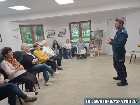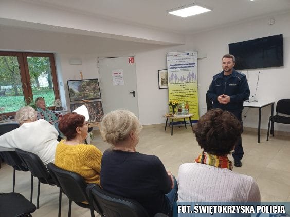W miniony czwartek staszowski dzielnicowy we współpracy z Zakładem Ubezpieczeń Społecznych w Staszowie zorganizował spotkanie z Klubie Seniora Plus. Funkcjonariusz przypomniał m.in. o różnych zagrożeniach, które mogą dotknąć osoby starsze takich jak np. oszustwa ,,na wnuczka” czy ,,na pracownika banku”. Policjant przekazywał praktyczne wskazówki na temat tego jak zabezpieczyć swoje finanse i chronić się przed działaniami przestępców.