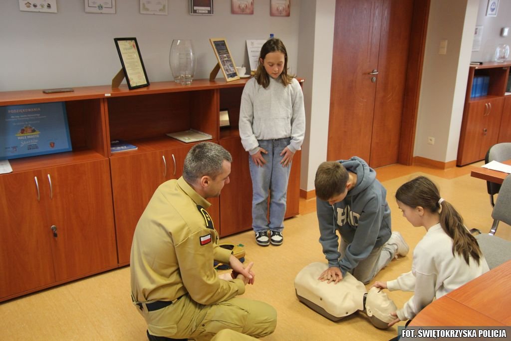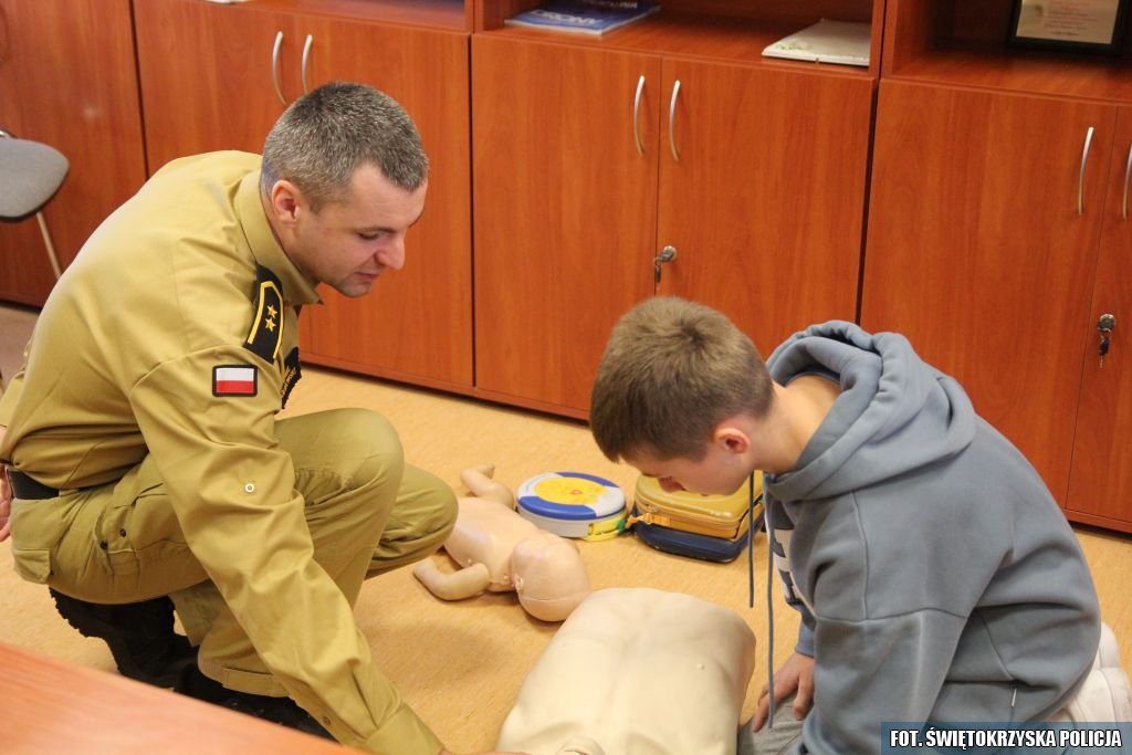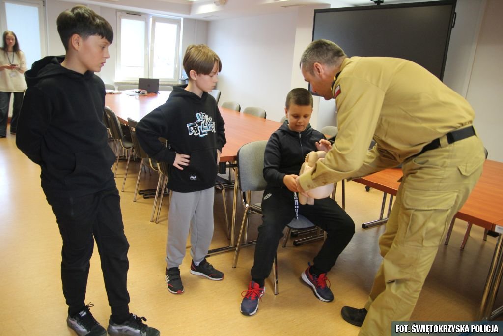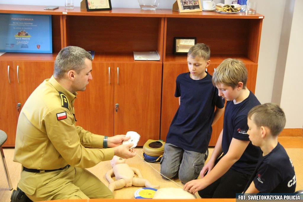 W kolejnym etapie turnieju odbyły się ćwiczenia praktyczne z zakresu udzielania pierwszej pomocy przedmedycznej nadzorowane przez strażaków z Komendy Powiatowej Państwowej Straży Pożarnej w Staszowie.