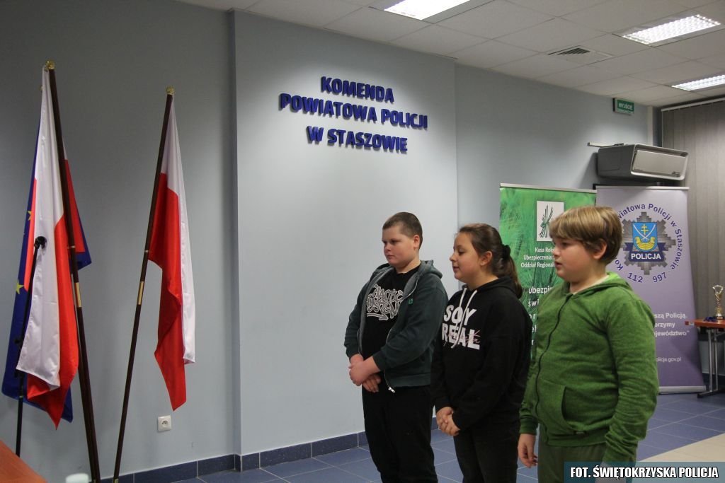 W czwartkowe przedpołudnie w budynku Komendy Powiatowej Policji w Staszowie, odbył się etap powiatowy XVII edycji Wojewódzkiego Konkursu ,,Bezpieczeństwo na piątkę". W rywalizacji uczestniczyło 9 drużyn ze szkół podstawowych z terenu naszego powiatu. Rywalizacja piątoklasistów rozpoczęła się od testu wiedzy składającego się z 35 pytań, dotyczących ogólnego bezpieczeństwa.