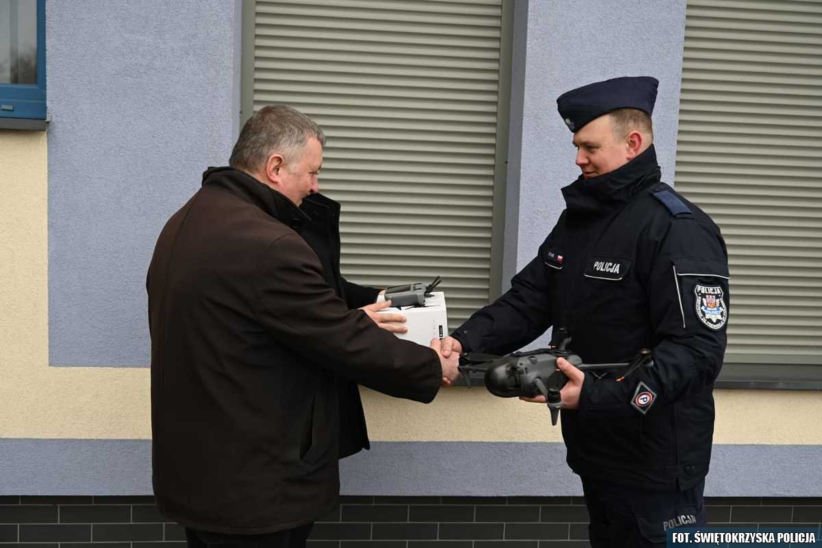 Jednym z punktów odprawy było przekazanie pojazdów służbowych oraz drona.