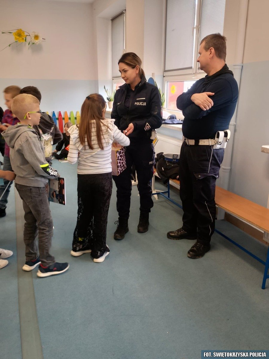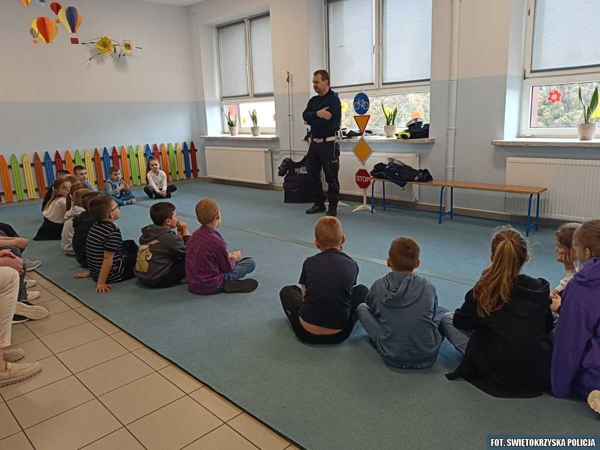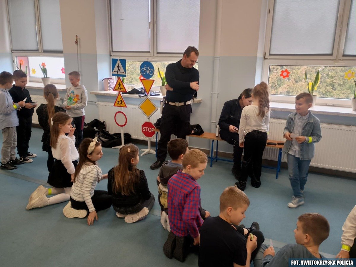 We wtorkowe przedpołudnie mundurowi ze staszowskiej drogówki spotkali się uczniami Publicznej Szkoły Podstawowej w Sichowie Dużym, aby promować wśród młodych ludzi postawy bezpiecznego zachowania w ruchu drogowym. Funkcjonariusze przypominali najmłodszym jak powinno się prawidłowo przechodzić przez ulicę zwracając uwagę na sygnalizację świetlną i znaki drogowe. Policjanci tłumaczyli zasady bezpiecznego poruszania się po drodze zarówno w roli pieszych jak i pasażerów samochodów.