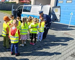 - Odblaskowi goście Dzieci z Publicznego Przedszkola nr 3 w Staszowie wraz z opiekunami odwiedziły dziś staszowskich policjantów. Podczas spotkania przedszkolaki mogły z bliska przyjrzeć się codziennej pracy funkcjonariuszy, dowiedzieć się, dlaczego tak ważne jest noszenie odblasków, a także poćwiczyć bezpieczne przechodzenie przez jezdnię.